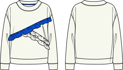 Vector Woman Square Neck Blouse Fashion Cad Long Sleeved Top With Smocked Detail Technical Drawing Flat Sketch Jersey Or Woven Fabric T Shirt With Front Back View White Color Back Wall Mural